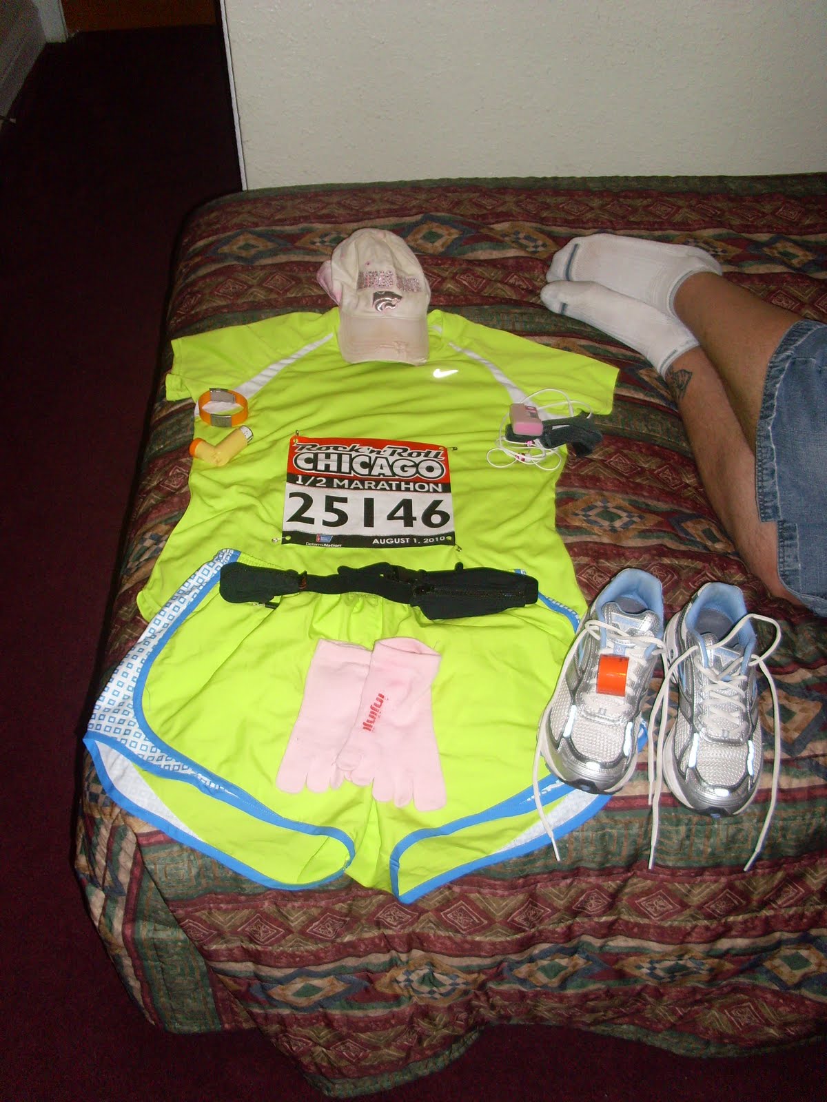 So today was my mom's running group. We were running the Bethel College Trail 2 times around. On the first lap, we had a little chit chat. We talked about other runs we want to do, for example Rock n Roll Vegas is December 5th and I think that my sis-n-law and I should take a fast weekend and go run it. And we talk about bloggers we read and races they just completed. (see we do love you all!!) And we talked about the Banana (muffin top) outfit I wore this past weekend in Chicago RnR. Apparently wonderful sis n law likes the outfit and thinks it looks good. She incouraged me to go back and look at the photos from my first half marathon this past November. So I did,
